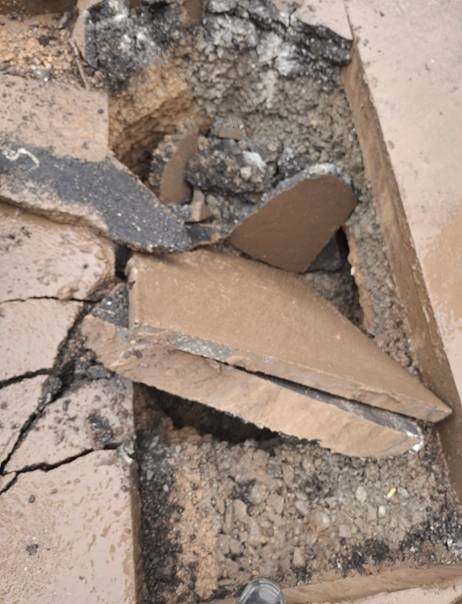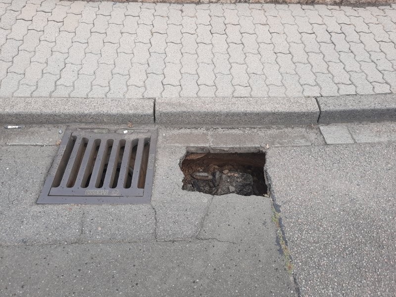 Nach Öffung der Asphaltoberfläche wurde ein größerer Hohlraum festgestellt.