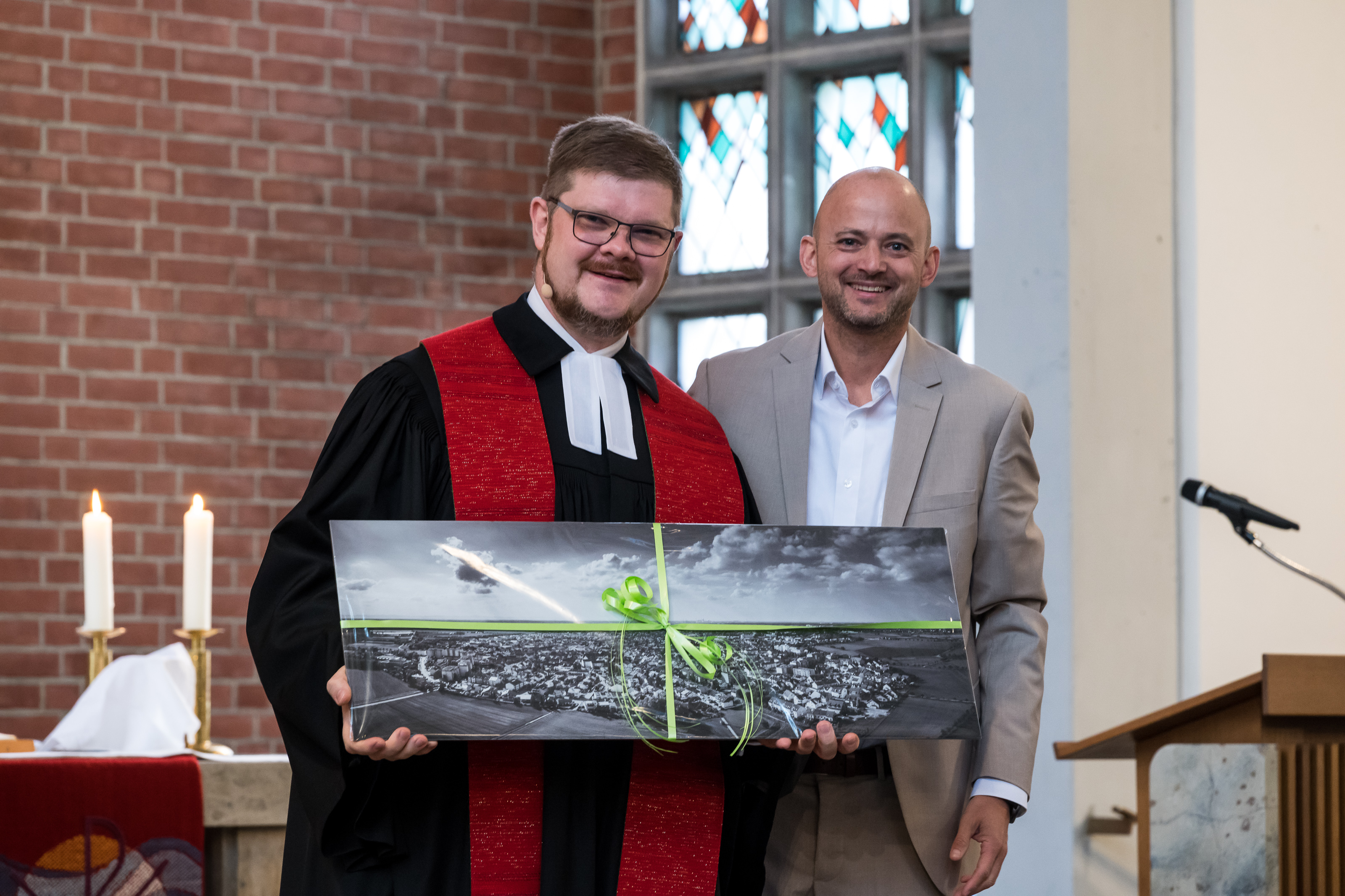 Im Rahmen eines feierlichen Gottesdienstes ist Pfarrer Tobias Habicht am vergangenen Wochenende in der evangelischen Kirche verabschiedet worden. Neben Vertreterinnen und Vertretern der Kirchen nahm auch Bürgermeister Pascal Seidel Abschied von Pfarrer Habicht. Er bedankte sich für seinen Dienst in der Gemeinde. In seinem Grußwort betonte der Rathauschef, dass er den Seelsorger auch in der Zusammenarbeit mit der politischen Gemeinde sehr geschätzt habe. Er habe sich immer engagiert u.a. für die drei evangelischen Kindergärten eingesetzt.