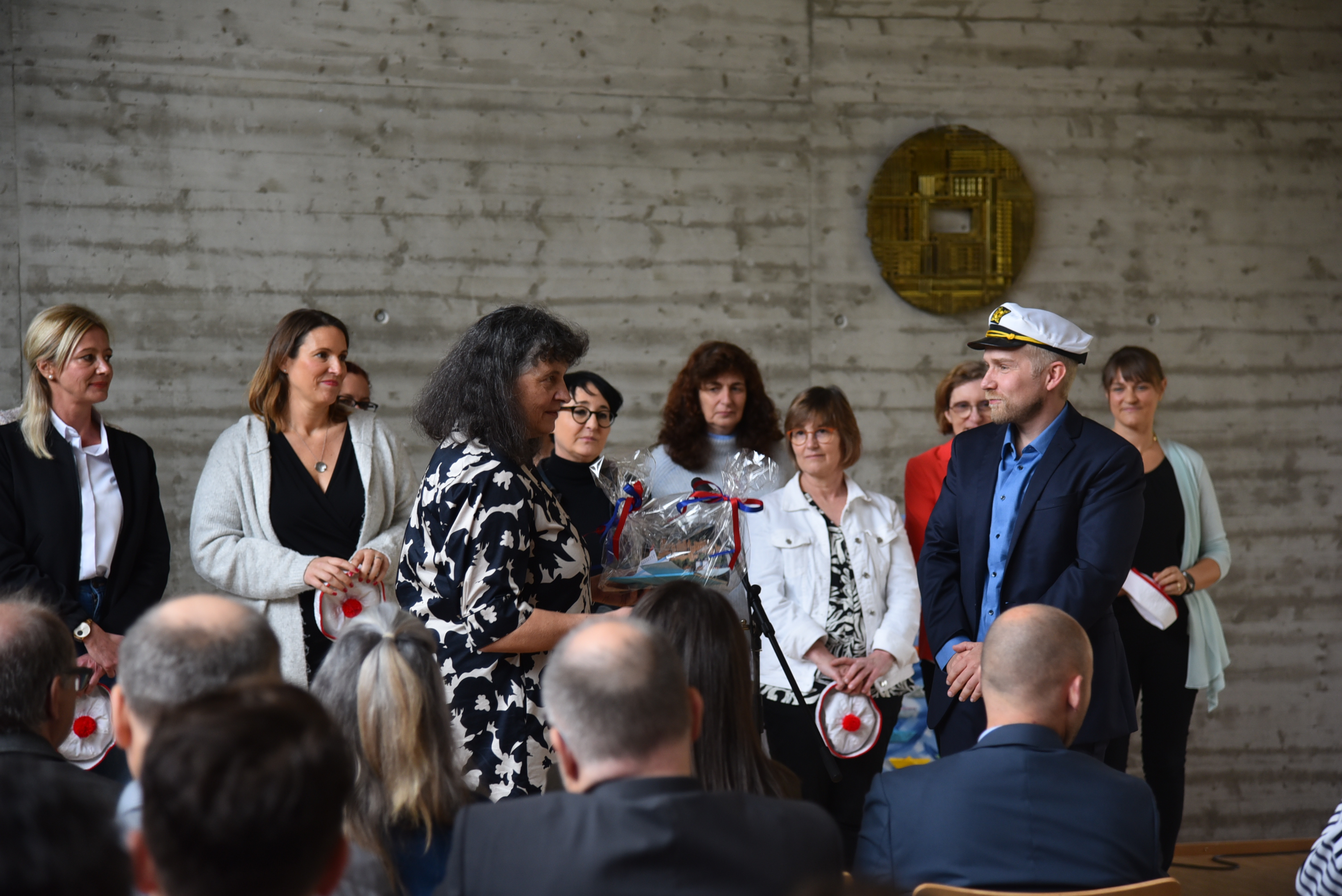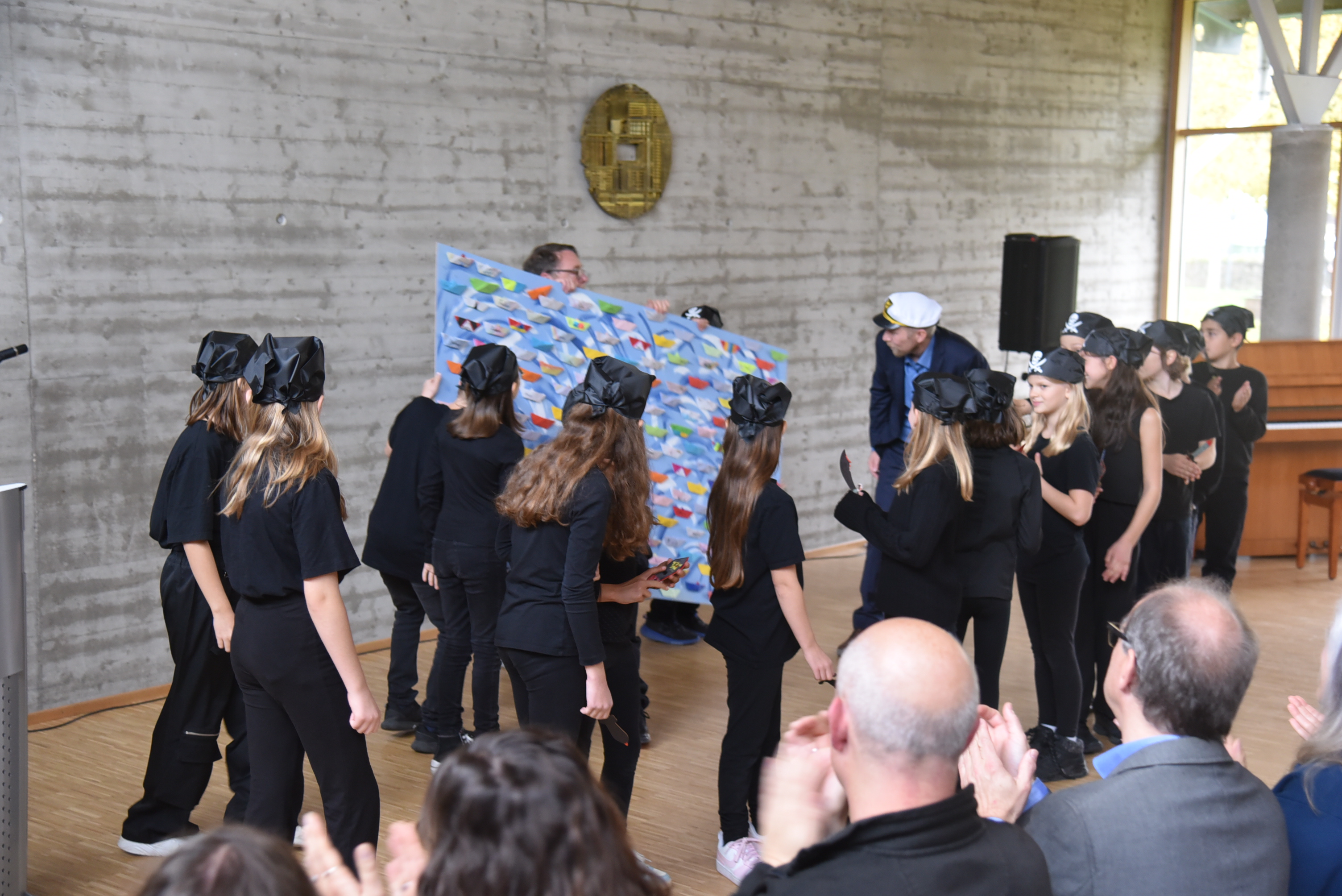Bei der Feier im evangelischen Gemeindehaus gab es neben vielen Grußworten auch musikalische Vorführungen durch das Kollegium und durch Schülerinnen und Schüler. Wie ein roter Faden zog sich das Thema Meer, Schiff, Kapitän und Matrosen durch die Veranstaltung. Am Schluss hatte der Rektor die Kapitänsmütze auf.