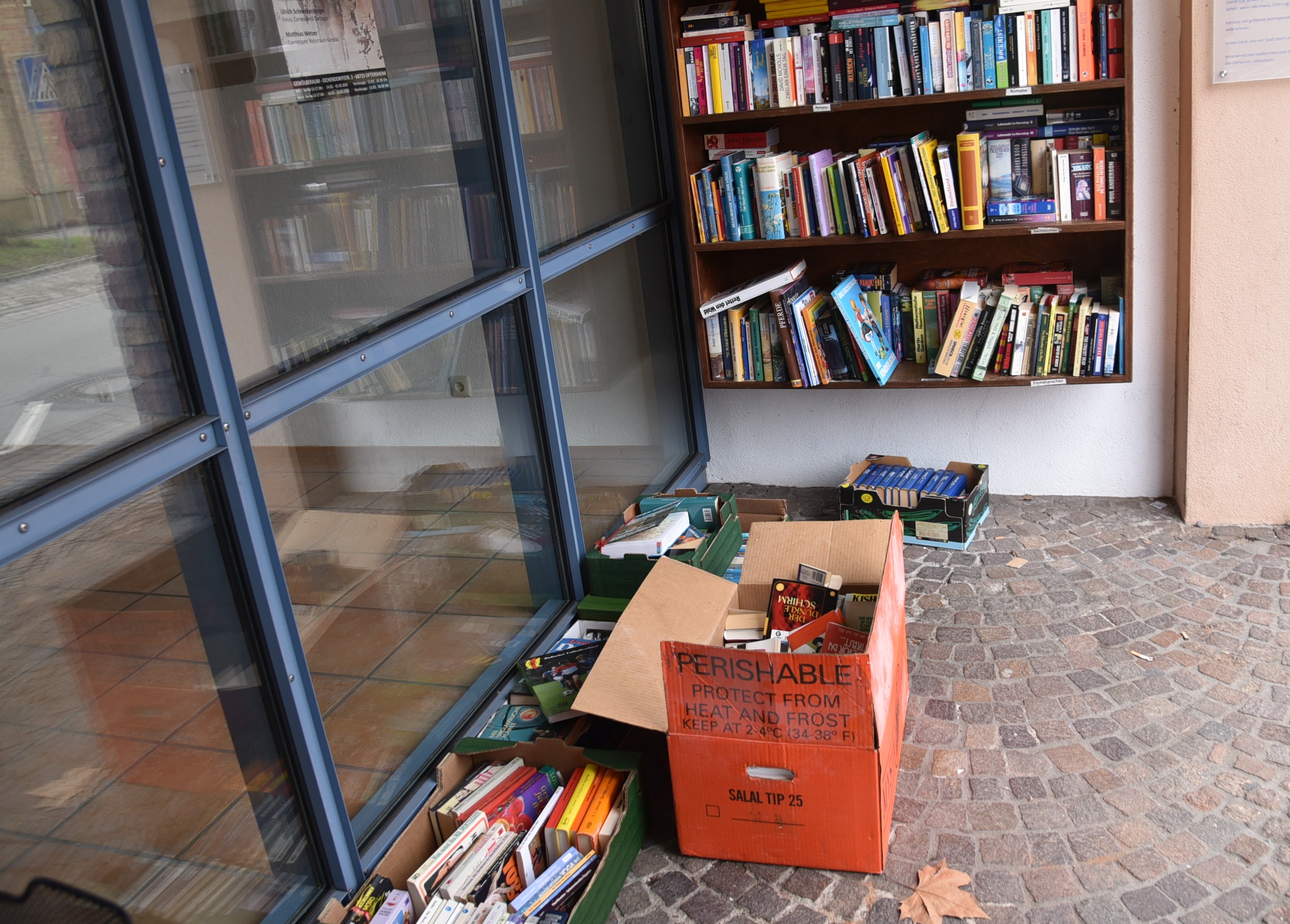 Am öffentlichen Bücherregal in der Eichendorffstraße 2 haben Unbekannte erneut etliche Kartons mit vielen Büchern abgestellt. Wir möchten darauf hinweisen, dass diese Nutzung nicht erlaubt ist.