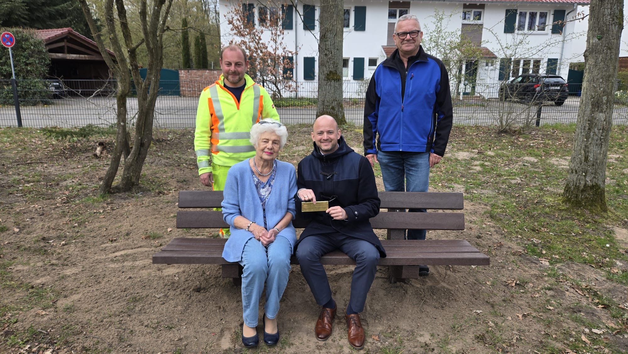 Yvonne Wierer hat der Gemeinde eine Sitzbank gespendet. Aus Anlass ihres 80. Geburtstages hatte sie ihre Geburtstagsgäste um Spenden gebeten, die sie dem Rathaus weiterleitete. Der Bauhof besorgte und montierte die Bank in der Hardtwaldsiedlung auf dem Spielplatz. Wir sagen danke!