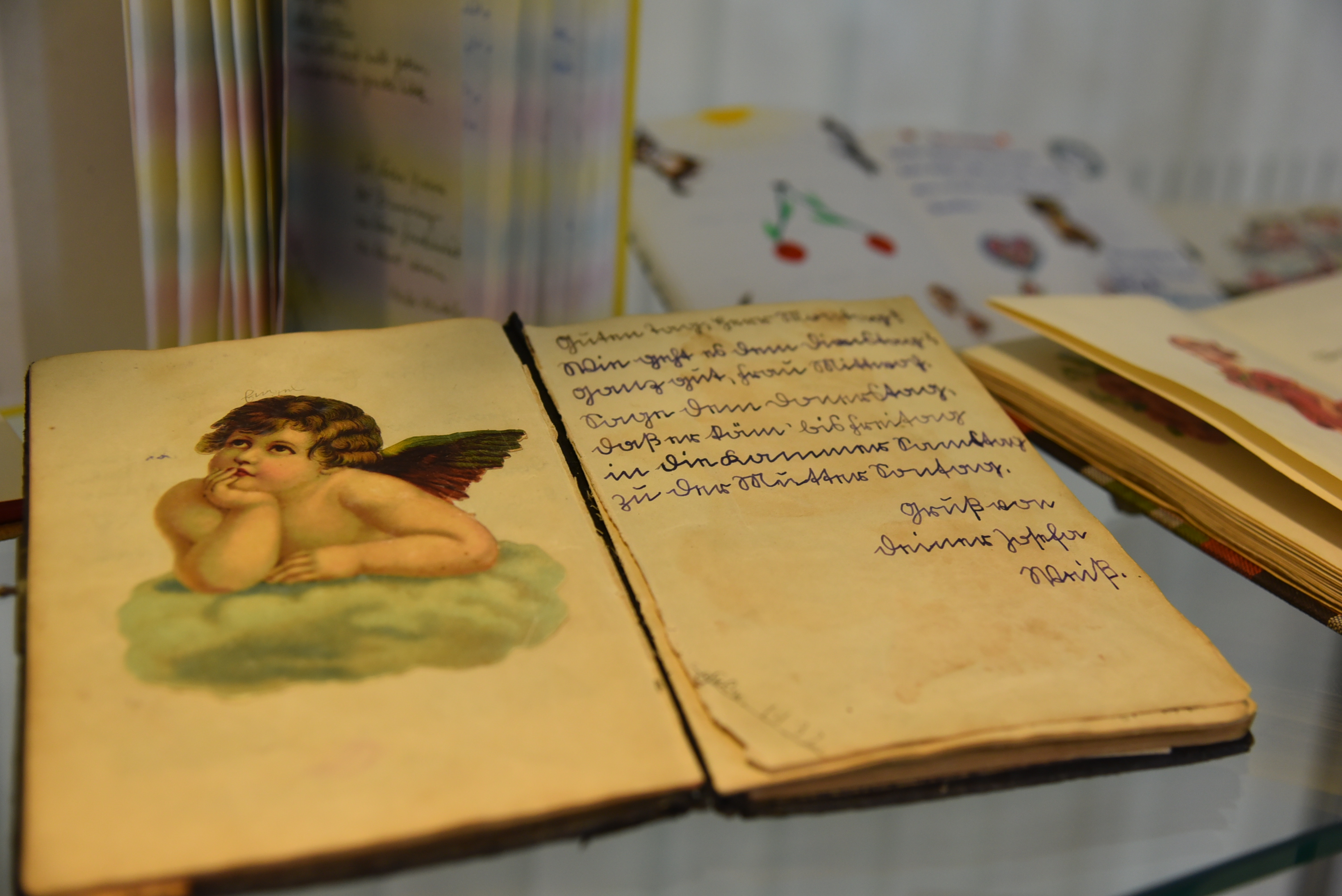 Wer kennt noch Poesie-Alben? Früher gaben sich Eltern, Tante, Onkel oder Schulkameraden viel Mühe, um herzliche Verse und Sprüche ins Album zu schreiben. Dann haben sie alles noch kunstvoll verziert und ausgestaltet.So ist in einem der Alben zu lesen: "Sei doch des Lebens immer froh, was kommen soll, kommt sowieso!“ Beliebt waren auch die sogenannten Glanzbildchen. Der älteste Eintrag stammt von 1910. Die ausgestellten 15 Alben werden noch ergänzt mit alten Glückwunsch-Karten. Die Ausstellungs-Stücke haben Frauen des Arbeitskreises "Volkskunde und Brauchtum" des Heimat- und Kulturkreises zur Verfügung gestellt: Lydia Auer, Christa Brake, Imelda Grein, Judith Grigo, Yvonne Jung, Marita Mikli, Silvia Mostowys-Wittmer, Dorothea Müller, Gudrun Rühl, Yvonne Wierer und Carmen Zund.